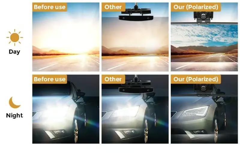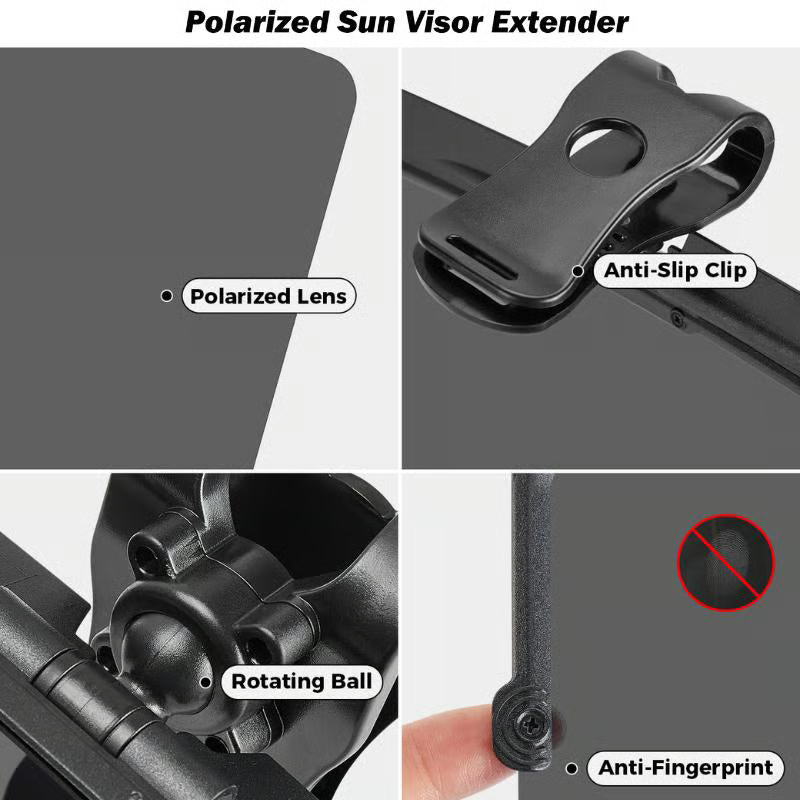 The sun visor extender acts like sunglasses, featuring a polarizing plate that eliminates glare and enhances clarity. Enjoy a softer, more comfortable visual environment while reducing eye fatigue